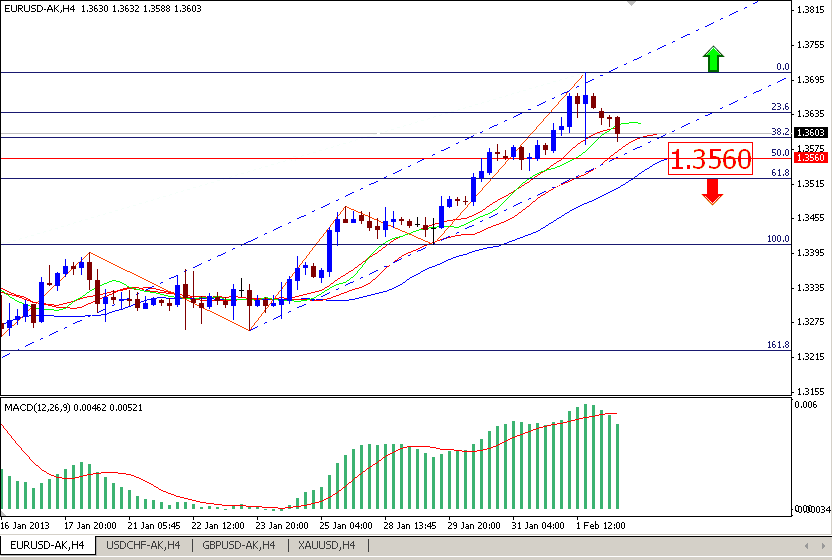 Pada sesi hariannya euro di perdagangkan setinggi 1.3708 dan di tutup 1.3647 pada jumat (01/02/2013), Selama sesi perdagangan Jumat, Euro terhadap dolar naik 0.44%.