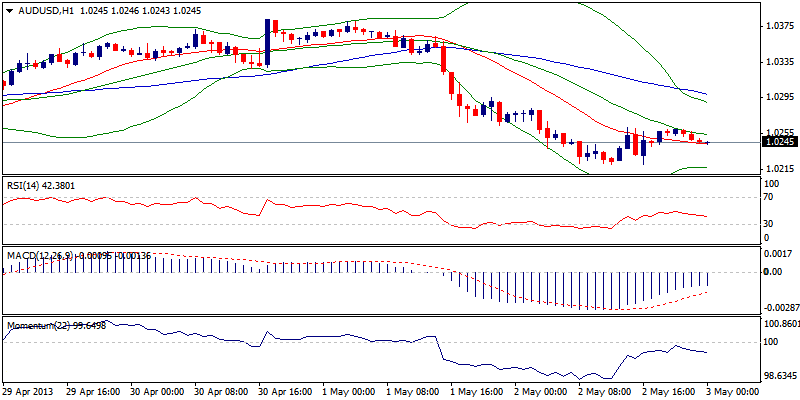 AUD/USD diperdagangkan di fase konsolidasi setelah pembalikan dari 1.0383. Harga kembali terbatas di 1.0260 ketika studi perjamnya berada di pola negative dan berada di resiko penurunan. Sementara itu pengemablian dari resisten psikolohis 1.0300 dibutuhkan untuk mengkonfirmasi 1.0220 dan kembali fokus pada target yang lebih tinggi.