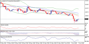 USD/JPY kehilangan arahnya di hari Senin ketika break di bawah support 100.00 menuju support selanjutnya di 99.00. Kenaikan dari studi oversold terlihat ketika koreksi, penurunan mengambil ahli kendali dari teknikal jangka pendek, dan membuat resiko penurunan tetap terjadi.