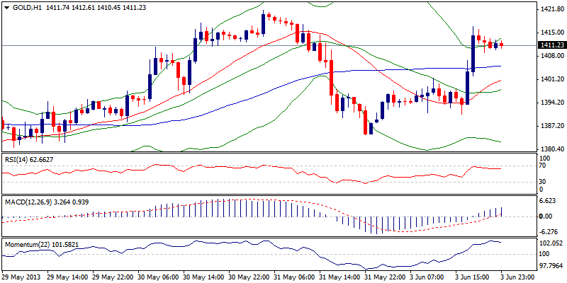 Spot Gold kembali menguat setelah kenaikan dari terendah di Jumat lalu di 1384. Harg kembali ke wilayah positif dan menuju 1421, break dari yang dibutuhkan untuk melanjutkan pemulihan jangka pendek dari 1338 dan membuka 1430/36.