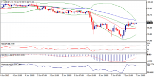 USD/JPY memperpanjang reli koreksi dari terendah di hari Jumat di 94.97, dengan pembalikan yang ditandai oleh candle hammer di hari Jumat. Gap di hari Jumat naik saat pembukaan dsn kembali naik dari 98.00. namun, pelemahan saat ini, selama harga bertahan di bawah 99.30/45, dengan break disini diperkirakan menandakan dasar jangka pendek untuk pemulihan lanjutan. Namun resiko penurunan merupakan bagian dari tren penurunan yang lebih luas dari 103.72 akan terjadi.