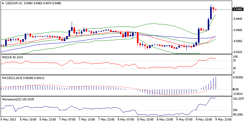 USD/CHF melonjak dari 0.9435 dan kembali naik di 0.9497 setelah clearing di resisten trendline 0.9465. Kenaikan yang kuat menuju target selanjutnya dan resisten kunci di 0.951/65, 14/27 / 03. Studi jangka pendek saat ini berada di kondisi overbpughtm namun diperkirakan akan ada pause dari aksi koreksi menuju kenaikan dengan support yang solid 0.94.35/00 dari reli hari Kamis diperkirkan untuk menjaga penurunan terlindungi.