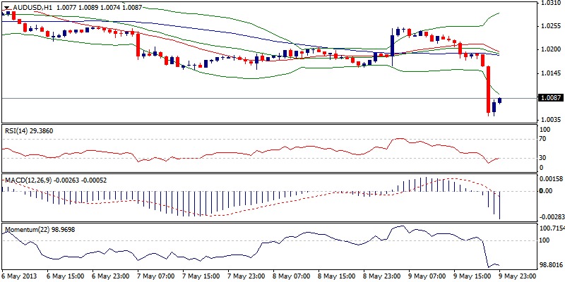 AUD/USD turun di hari Kamis setelah reli koreksi di atas 1.0200/20, membuka peluang dari koreksi yang lebih kuat. Kenaikan di zona 1.0250 dengan pembalikan setelah harga break di bawah 1.0154. Penurunan dari support di 1.0114 dan level psikologis di 1.0100 menandakan break di bawah range multi-month dan dimulai fase penurunan, di target penurunan selanjutnya. Kondisi oversold di dalam studi jangka pendek membuka jalan untuk koreksi yang seharusnya terbatas di bawah 1.0150.