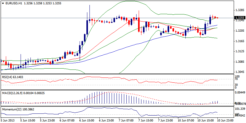 EUR/USD kembali naik ke pola positif dan mencoba menuju ke puncak kisaran konsolidasu setelah menemukan support di 1.3180. Teknikal jangka pendek terbilang positif ketika EUR/USD ditutup dengan mejaga target kenaikan 1.3284. Jika break di bawah 1.3180 maka akan menunda kenaikan dari pembalikan yang lebih dalam menuju 1.3150.