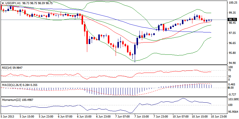 USD/JPY membuat pemulihan yang signifikan dalam reli dua harinya dari 94.97 pada perpanjangan di hari Senin sampai 99.30. Pola perjamnya terbilang positif dan membuat pemulihan lanjutan dapat terjadi jika break di atas 99.60 untuk mengkonfirmasi pola jangka pendek dan dan menghindari resiko penurunan ketika studi 4 jamnya masih berada di wilayah negative. Break naik untuk membuka level psikologis ke 100.00, menuju 100.40. Support awal berada di 98.45 sementara penurunan di bawah terendah hari Senin berada di 97.70 akan membawa penurunan kembali terjadi.