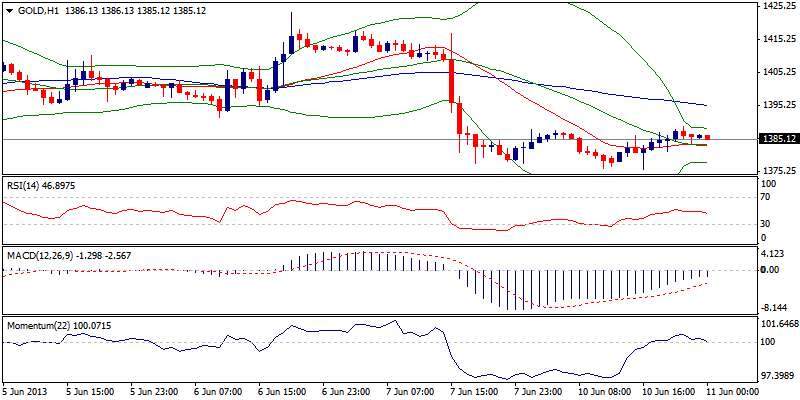 Spot Gold berada di pola negative dengan harga mengarah ke selatan dan berada di 1375. Penurunan masih mungkin terjadi sementara teknikal jangka pendek bersifat bearish.