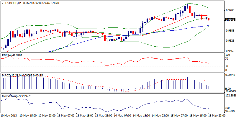 USD/CHF turun dari kenaikan yang terjadi di hari Rabu dengan kenaikan di 0.9746, koreksi dari reli yang baru terjadi. Mode koreksi dapat beraselaraksi jika penurunan dari support yang kuat di 0.9930 dan menurun dari bullish awal. Studi perjamnya negative dan terjadi kondisi overbought terlihat scenario dengan kehilangan support 0.9630/00, untuk membuka 0.9565/51. Support kunci berada di 0.9519 dibawah yang dapat membawa penurunan terjadi sepenuhnya. Di sisi lain, struktur bullish di chart harian menjaga fokus kenaikan dengan resisten yang berada di 0.9746 dan 0.9775/0.9800.