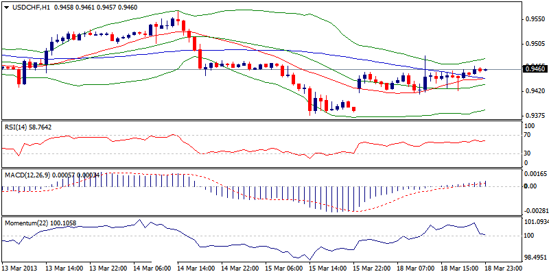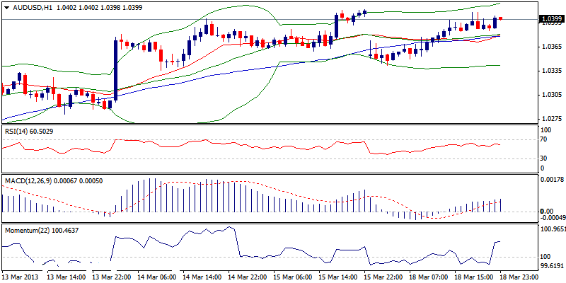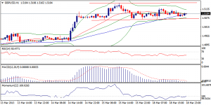 EUR/USD sejauh ini tidak dapat mengisi bear-gap pada pembukaan kemarin, sebagai rebound dibatasi pada retracement 50% dari 1.3106/1.2879 jatuh di 1.2994. Bertahan di bawah resistance psikologi 1.3000, tetap beresiko untuk melemah, karena market menunggu berita dari parlemen Cyprus tentang bailout yang merupakan penggerak utama pasar. Secara teknikal beberapa jam ke depan masih dalam area negatif dan prospek ke depan dibatas untuk recovery yang lebih kuat pada level tinggi minggu lalu di 1.3106-1.3133, tampak sebagai resistance utama. Kehilangan 1.2900, berpeluang ke 1.2875 dan 1.2865.