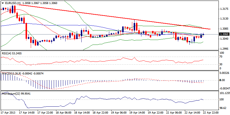 EUR/USD berada di kisaran 70 pips dan diposting rendah di 1.3014. Melambung sampai zona 1.3060 dimana mata uang ditutup kemarin, hal ini mengurangi resiko menguji level support di 1.3000. Namun sementara restisten awal 1.3100/27 tetap utuh, fokus akan tetap berada pada batas bawah dari kisaran 1.3000/1.3200. Studi jangka pendek masih negative dan dapat turun sewaktu-waktu.