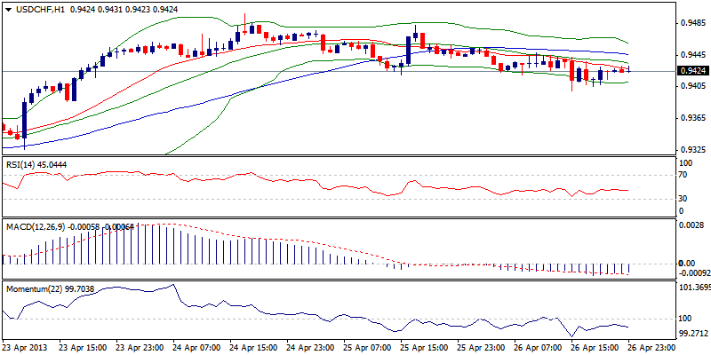 USD/CHF berbalik setelah gagal berada di level psikologis di resisten 0.9500. Studi 60 menit tebrilang negative namun indicator 240 menit bertahan di wilayah positif yang menjaga upaya mencapai zona 0.9400 terjadi ketika struktur bullish masih utuh di 0.9200.