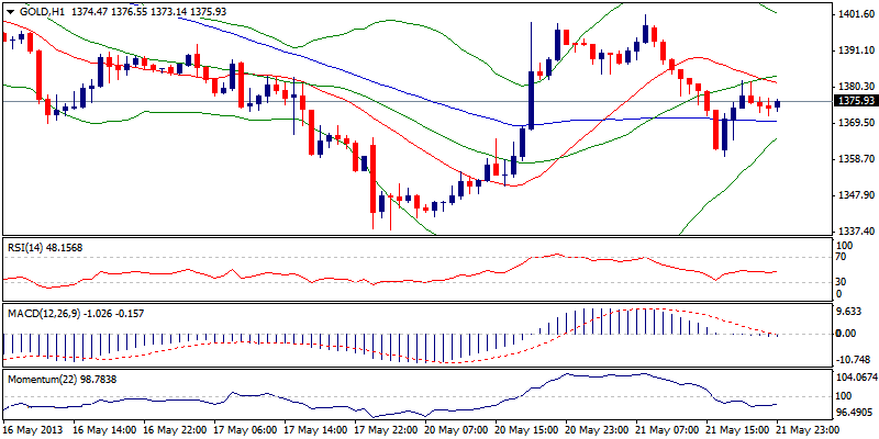 Spot Gold kehilangan aksinya setelah mengulangi kegagalan untuk clear di 1400 dan turun sampai 1360. Bounce sampai 1382, terlihat cukup untuk mencegah resiko penurunan. Studi jangka pendek yang melemah menjaga sisi penurunan dengan resiko penurunan yang terlihat setelah mengakhiri fase konsolidasi.