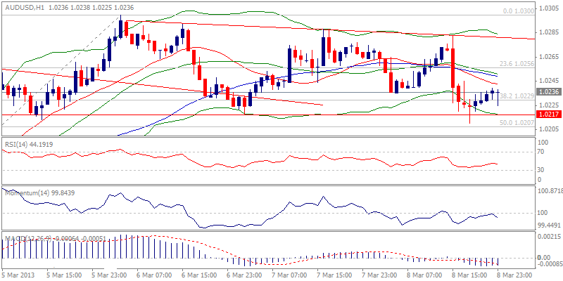 Melanjutkan range konsolidasi di bawah high baru-baru ini di 1.0300. Beberapa jam ke depan pergerakkan masih netral, dan harga masih bullish dalam 4 jam ke depan yang kemungkinan akan melewati 1.0300. Pada downside, 1.0200 merupakan area support yang baik sekarang, jika break maka akan terus melemah.