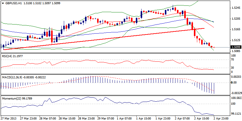 GBP/USD menurun dengan cukup tajam hari ini dan upleg terbalik sepenuhnya untuk jangka pendek dari 1.5091, Hal ini terjadi setelah mengalami penolakan pada resisten kunci dan level tertinggi sebelumnya yaitu pada 1.5259. Penurunan dibawah s/t bull-trendline utama, dari 1.4830 dan membuka 1.5100/1.5090, melihat adanya resiko pada pola double top yang akan terlihat pada clear break dibawah 1.5090. Sejauh ini belum terlihat adanya sinyal pembalikan.