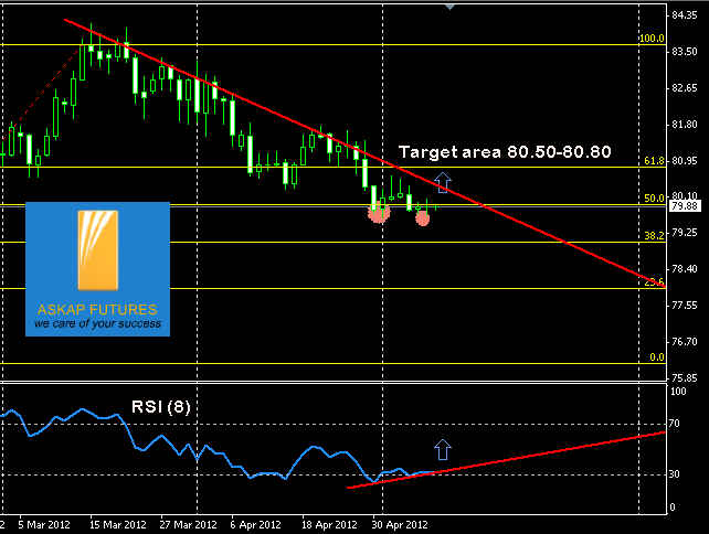 Strategi yang kemarin gagal ! Jadi kali ini saya sodorkan startegi baru sebagai berikut, BUY dibawah level 80.00 dengan Target Profit di 80.50, target lebih lanjut bisa dipasang di 80.80. Selamat Trading !