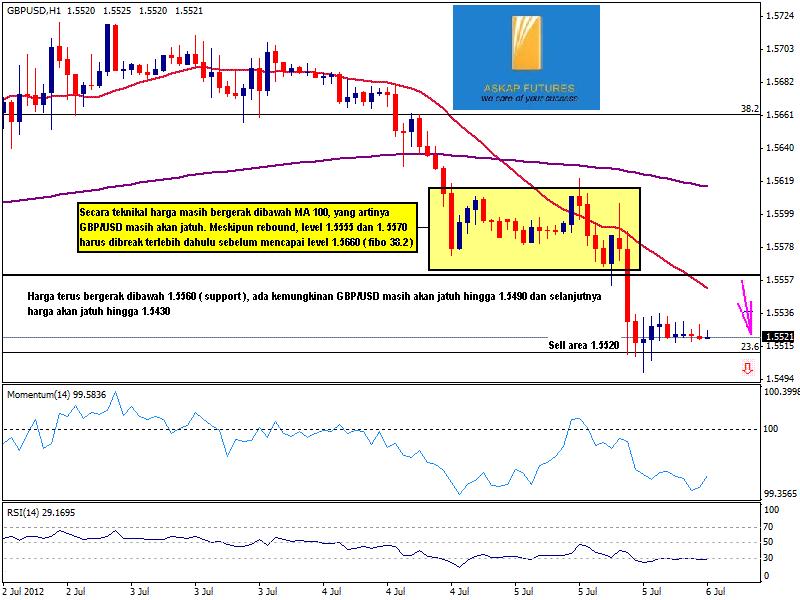 Pound awalnya rebound pada saat data pelonggaran BOE, naik di atas 1,5600. Namun, dengan cepat tenggelam diharga 1.5500 dimana retracement 23,6% jatuh dari tahun ini. Setelah berita itu, GBP/USD telah mengatur berbagai konsolidatif dekat posisi terendah dengan outlook bearish sesuai dengan indikator teknikal. Chart hourly MA menunjukkan mendapatkan bearish kuat di atas harga saat ini, sementara RSI jenuh sekitar 30. Dalam 4 jam secara teknikal untuk lanjut ke bawah, dengan berada di bawah 1,5490 maka pintu pembuka untuk jatuh hingga level 1,5260.