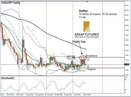 USD/JPY Weekly Analysis 18 Oktober 2011, Kemungkinan Masih Tertahan Di Bawah 77.48